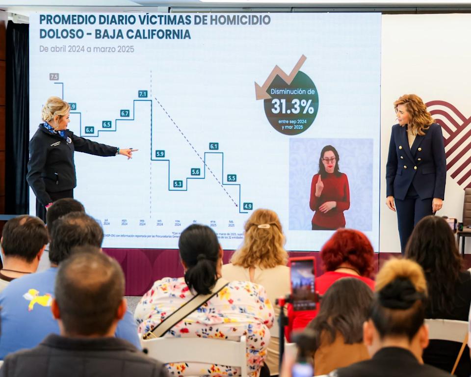 La gobernadora de Baja California, Marina del Pilar Ávila Olmeda, destacó hoy, durante su Conferencia Mañanera, una notable disminución en los homicidios dolosos en la entidad, enmarcada dentro de los logros obtenidos en el primer trimestre de 2025 mediante la Estrategia de Seguridad implementada en la región. Según los datos presentados, Baja California ha pasado del segundo al décimo lugar nacional en cuanto a homicidios, un avance significativo que refleja el esfuerzo constante en la lucha contra la violencia.