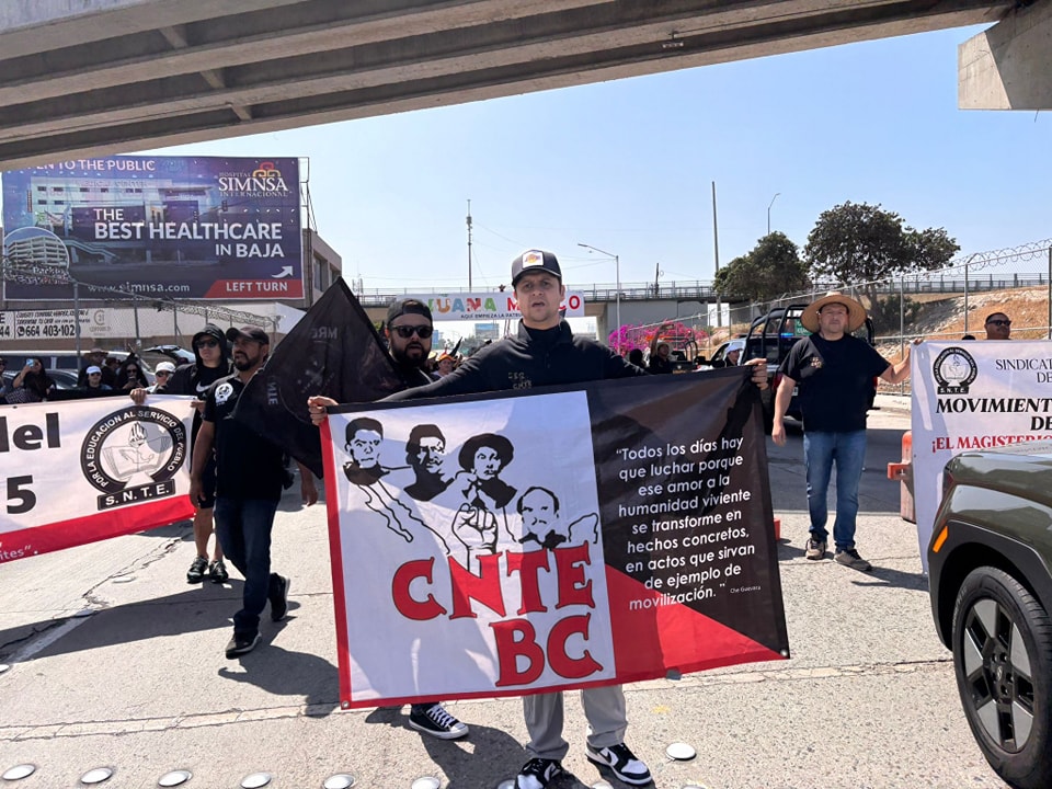 Esta mañana, integrantes de la Coordinadora Nacional de Trabajadores de la Educación (CNTE), acompañados por padres de familia y trabajadores del sector educativo, bloquearon el acceso vehicular en la garita El Chaparral, uno de los principales cruces fronterizos entre México y Estados Unidos en la ciudad de Tijuana.