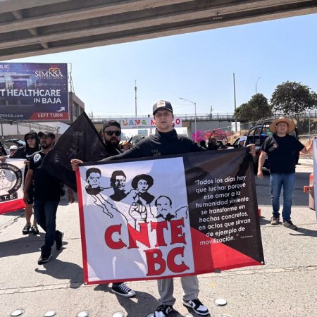 Maestros de la CNTE bloquean garita El Chaparral en Tijuana en protesta contra la Ley del ISSSTE